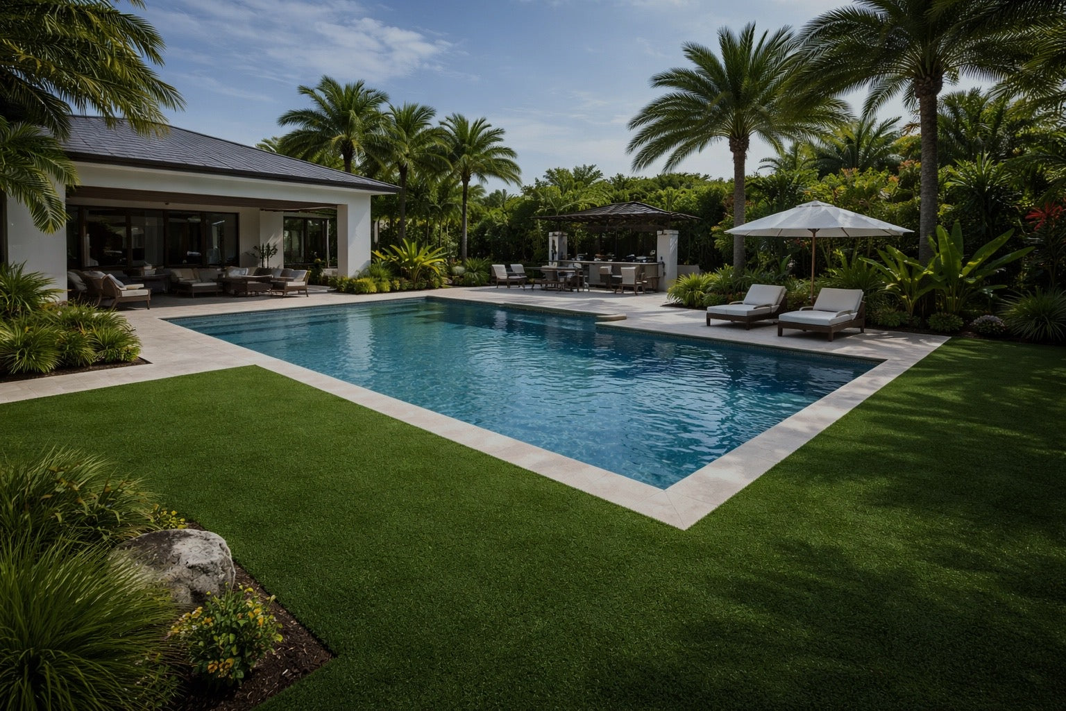 Every installation is planned, measured, and executed with precision. From base preparation to finishing details, we engineer each space to perform, not just to look green.